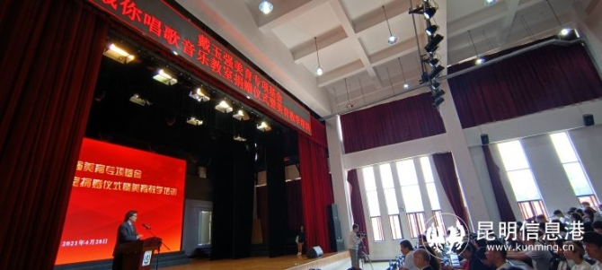 昆明信息港讯 记者周智宇 4月28日,戴玉强美育专项基金“戴你唱歌”音乐教室捐赠仪式暨美育教学培训在昆明学院举行。昆明学院聂耳音乐学院戴玉强院长向昆明经济技术开发区第一中学和官渡区六甲第一小学校捐赠音乐教室。