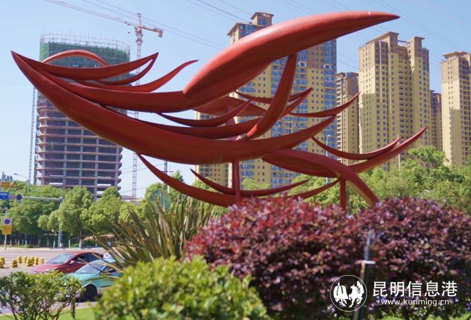 来到沣源路,围绕道路周边民俗文化打造的景观格外抢眼。设置的一组“龙”雕塑,“龙头”在昆曲高速转盘绿化带,“龙尾”在龙泉路口中央绿化带,首尾呼应,沣源路中央绿化带化身为 “龙身”,里面一树树高秆月季花正在热情奔放地盛开,花朵数量多,花头有碗口那么大,颜色艳丽多彩,主要以红色、粉红色、白色、黄色等为主,仿佛一条彩龙展现在市民眼前。