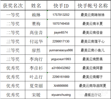 昆明信息港讯 记者周智宇 4月29日,由云南快手主办的“最美云南”酒旅短视频大赛圆满结束,评选出一等奖1个,二等奖2个,三等奖3个,优秀奖4个。
