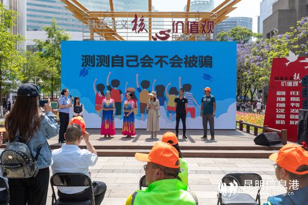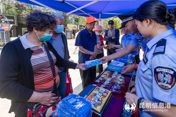 活动中,昆明市公安局刑侦支队五大队党支部党员民警向群众开展防范电信诈骗法制宣传。中国建设银行云南省分行个人金融部党支部党员向群众进行“断卡行动”宣传。过程中,党员们与群众积极互动,生动细致的讲解不时赢得群众的鼓掌点赞。