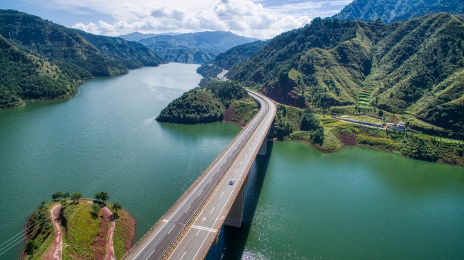 汽车奔驰在新修建的高速公路上 左滨洪摄