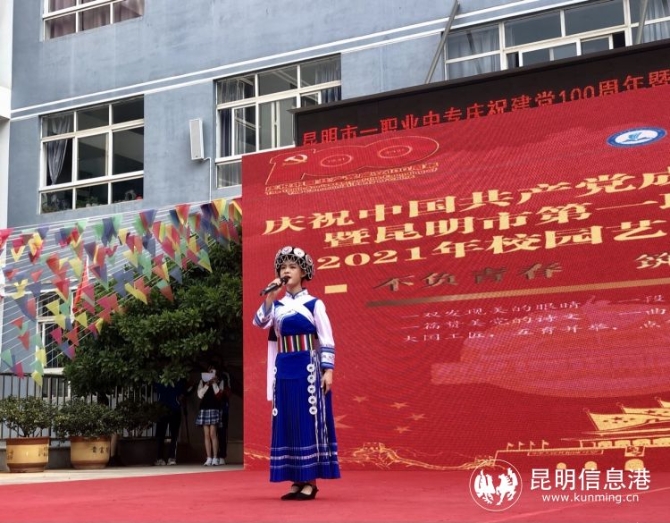 昆明信息港讯 记者上官艳君 4月30日,昆明市第一职业中等专业学校(以下简称“市一职中专”)庆祝建党100周年暨2021年校园艺术节展演举行,全校师生在歌舞朗诵声中弘扬爱国主义精神,追忆、传承红色基因。