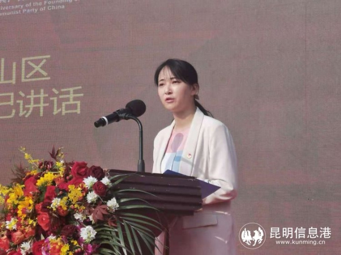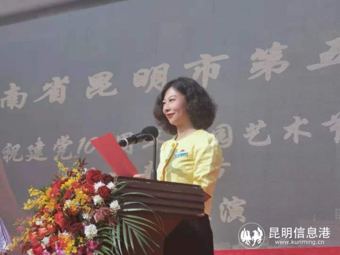 在随后举行的昆五中庆祝建党100周年“不忘初心跟党走 青春奋进新时代”艺术节暨五四青年节文艺汇演上,吕萍校长致辞。