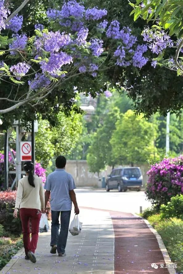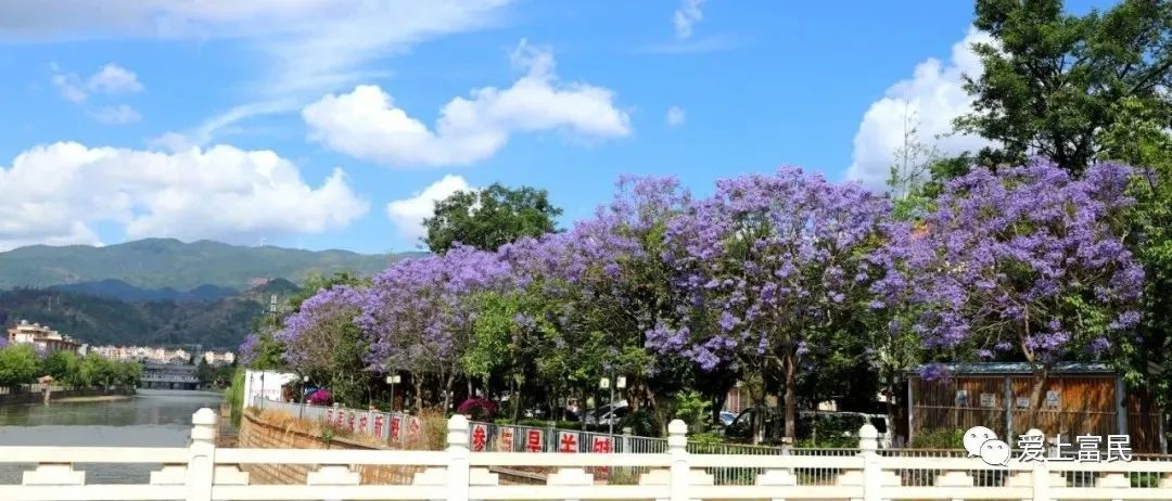昆明信息港讯 通讯员吉旭 随着气温持续升高,遍布于昆明市富民县城的蓝楹花树缀满了一串串紫色的花朵。紫色的蓝楹花竞相怒放,为富民这座小城市平添了几分妖娆,市民游客在螳螂川沿岸、上河园、富民大道、文昌路皆可欣赏。