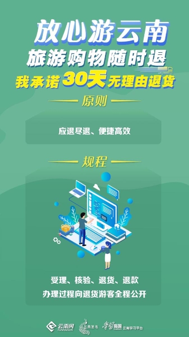 据了解,截至5月1日,西双版纳州各级文旅部门制作“30天无理由退货”宣传海报7万余份,在文旅企业、旅游汽车公司、餐饮店和景区主要入口处及明显位置粘贴,让广大的旅游消费者了解如购物不满意如何退货并能便捷实现。