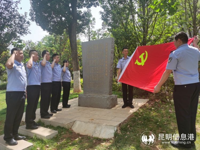 昆明信息港讯 记者江枫 通讯员贾代云 5月4日,昆明出入境边防检查站执勤三队民警前往昆明俊发城全国第一块“五四”薪火百年传承纪念碑前,重温入党誓词,讲述“五四”运动的爱国故事,共同见证“五四”薪火百年相传的历史。