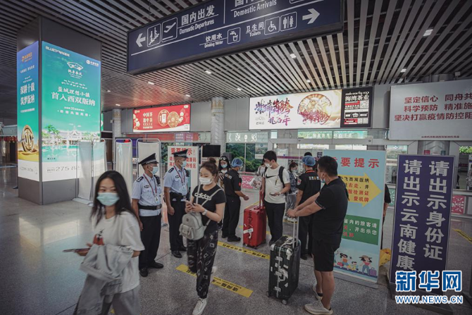 15点,在西双版纳嘎洒国际机场,民警在机场出口执勤。