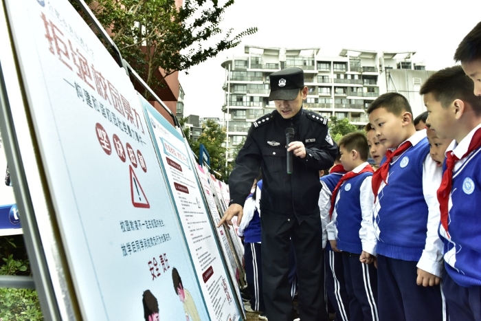 警务联络员为学生讲解校园安全知识(图片来源:CFP)