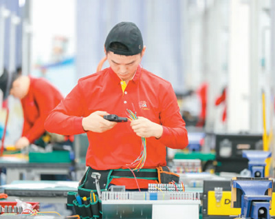 在去年于广州举办的中国第一届职业技能大赛上,选手们在参加电气技术竞赛。魏劲松摄(资料图片)