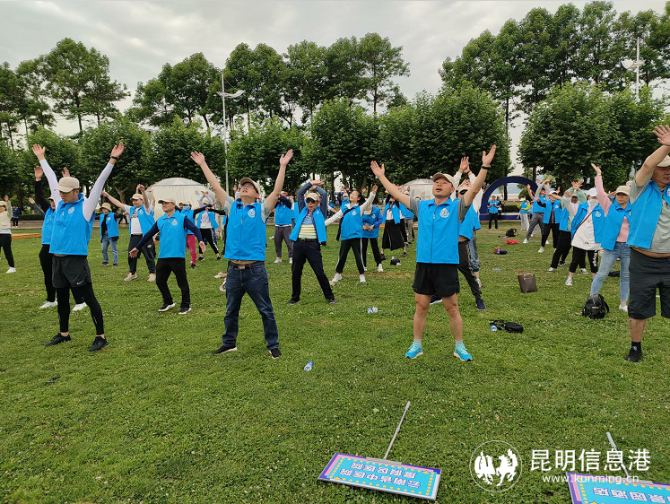 上午9时许,度假区管委会机关、驻区单位干部职工齐聚海埂公园阳光大草坪,大家在工作人员带领下压腿、展臂,做起了广播体操,还跟随音乐律动跳起富有少数民族特色的健身操,为接下来的健步行做好热身准备。