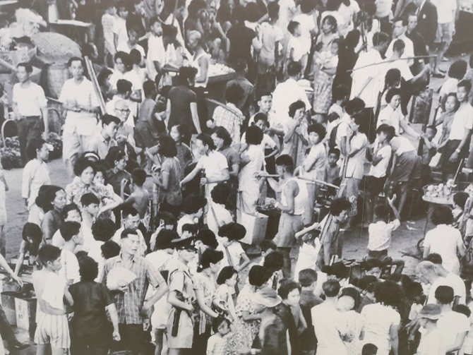 1963年5月,香港市民轮候抢水的混乱场面。(广东省水利厅供图)