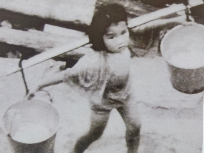 位于深圳水库旁的粤海水务东深供水工程展览馆,一幅幅黑白老照片在讲述着当年香港水荒的惨状。其中一张是“候水”的人龙,扛着扁担的香港市民,正在排队等待挑水。他们带上家里所有的盛水器皿,经常一等就是大半天,供水时间一过只好空手而归。另一张是一个挑着水桶的小女孩,她看起来只有4、5岁,柔弱的肩膀上却挑着全家人的渴望,她步履蹒跚,两个水桶在左右摇摆……