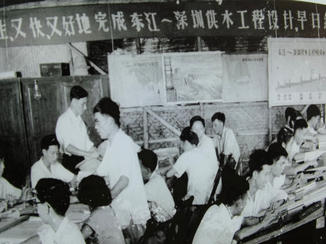 提起那段经历,时任广东省水电厅设计院技术员、现年86岁的王寿永感慨万分。他介绍说,当时工程设计人员分成3组分别下到东江口桥头、马滩、竹塘3个工地现场。在马滩站点,他主要负责马滩、塘厦等6个泵站的厂房设计工作。“工地只有临时帐篷,被褥、蚊帐、绘图工具等都得自己带。工程建设进度要求很紧,为赶工期,常常通宵达旦,每天最少也要持续工作13个小时以上。但大家干劲十足,没有一个人叫苦叫累!”