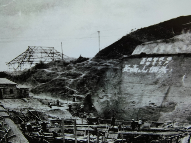 “要高山低头,令河水倒流”的标语在建设工地上十分醒目。(广东省水利厅供图)