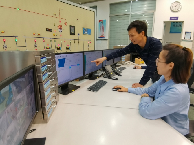 桥头供水管理部负责人陈耀荣正在中控室了解对港供水情况。(本刊记者孙进军 摄)