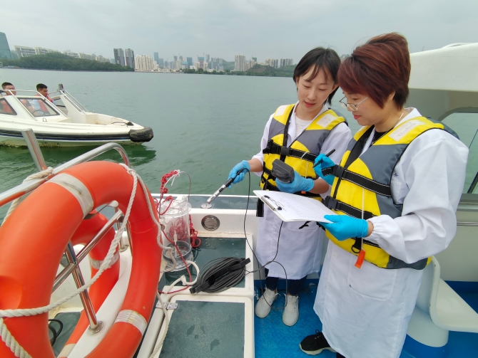 “一代人有一代人的使命和担当!作为新一代东深人,我们将运用高科技手段,继续推行24小时在线监测、现场检测和实验室检测相结合的‘三级监测模式’,日夜守护东江水!”走在深圳水库岸边,记者遇到正在乘船取水进行水质采样监测的佟立辉和她的同事,两人神情专注、一丝不苟,仔细记录着检测设备生成的数据,每个数据都精确到小数点后两位数。