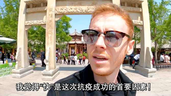 “当然有很多因素的,比如疫情追踪系统,大家都在手机微信上使用。还有中国建造各种设施的速度,从核酸检测中心到临时方舱医院。总而言之,中国就是建啥都快人一步。”