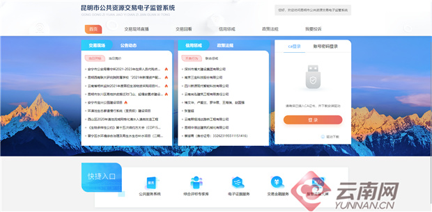 5月10日,由昆明市政务服务管理局(昆明市公共资源交易管理局)建设的昆明市公共资源交易电子监管平台,正式启动上线。