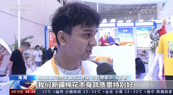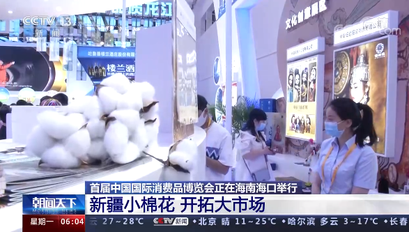 2020年新疆棉产量达516万吨,占全国棉花产量87%,相当于全国棉花消费量的62%。最具特色也是品质最高的新疆长绒棉,更是得到消费者的青睐。消博会新疆展区,5家新疆纺织代表企业,覆盖了从原材料到成品服装的全产业链,他们希望通过展会把新疆棉花推向更广阔的市场。