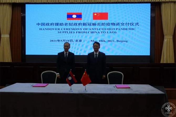 2021年5月10日,中国政府援助老挝政府新冠肺炎防疫物资交付仪式在北京举行。国际发展合作署副署长邓波清和老挝驻华使馆副馆长通沙万·培泰出席。