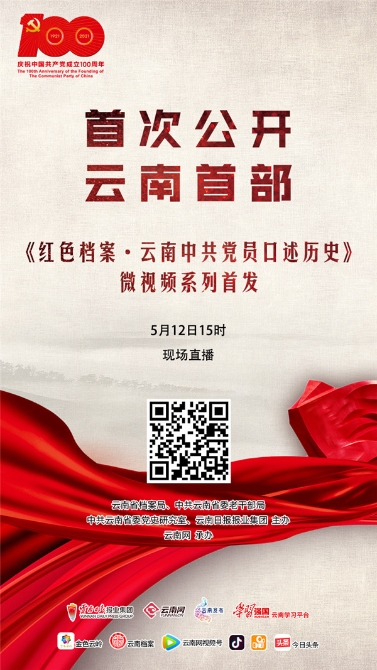5月12日,由云南省档案局、中共云南省委老干部局、中共云南省委党史研究室、云南日报报业集团主办,云南网承办的《红色档案•云南中共党员口述历史》微视频系列首发仪式将举行。届时,王复生、张冲、朱家壁、南静之等多位云南革命先辈的后人将现场讲述红色故事,分享岁月感悟,同时现场捐赠多年珍藏的史料档案。