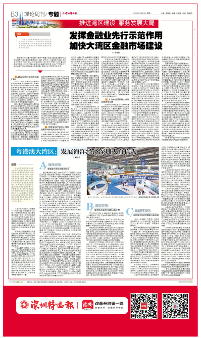 而海洋经济更是国际一流湾区的标配,建设粤港澳大湾区,其重要性不言而喻。如何增强深圳在粤港澳大湾区的核心引擎功能、更好地发挥深圳作为湾区核心引擎的积极作用,是深圳参与粤港澳大湾区建设的目标指引和使命担当。