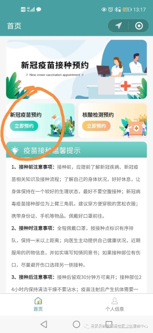 一、打开微信小程序云南健康码,进入新冠疫苗预约。