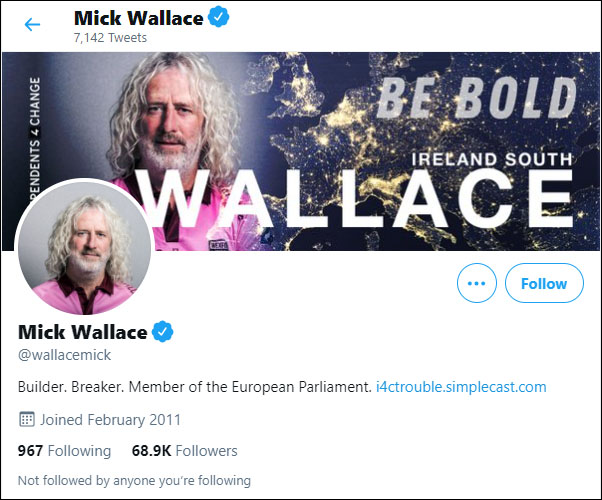 米克·华莱士现年66岁,自2019年7月开始成为欧洲议会议员。米克·华莱士的推特账号约有7万粉丝,此前曾多次发文赞扬中国在扶贫、抗疫方面取得的成就。