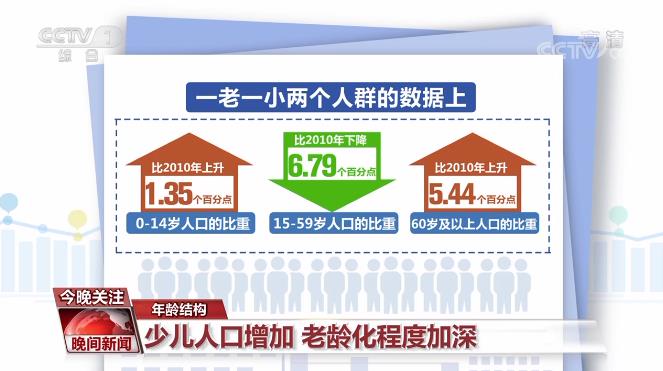 “一老一小”两个人群的数据与2010年相比,0到14岁上升了1.35个百分点,15到59岁下降了6.79个百分点,60岁及以上人口的比重则上升了5.44个百分点。