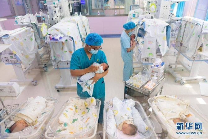 5月10日,李卓祥(左)为病房里的新生患儿喂奶。新华社记者陈欣波/摄