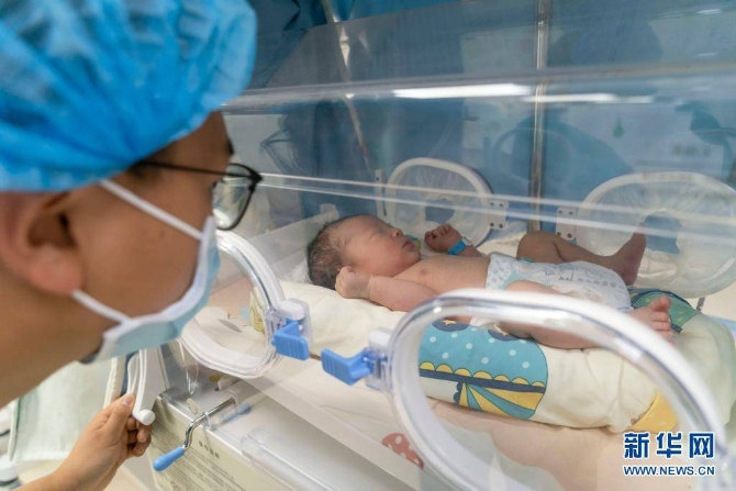 5月10日,李卓祥查看婴儿培养箱里的一名新生患儿。新华社记者陈欣波/摄