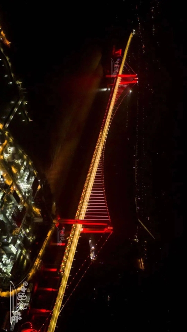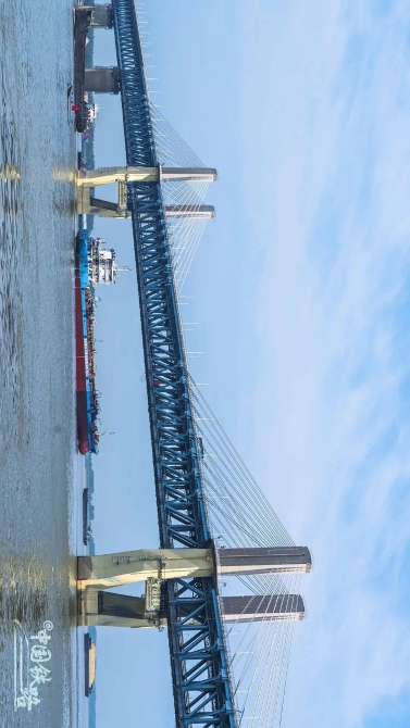 全长1290米,这座双塔斜拉桥的630米主跨刷新了公铁两用斜拉桥跨度的世界纪录。