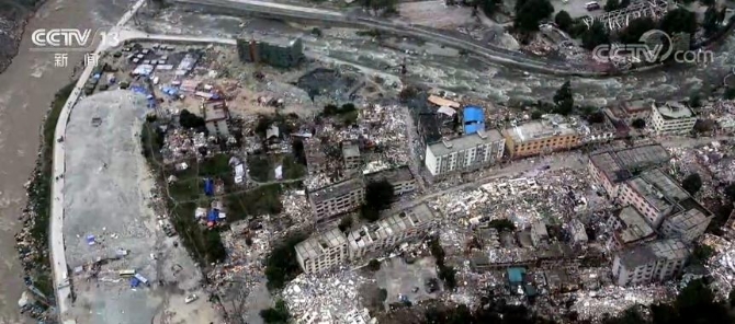 “5·12”地震发生,离汶川约100公里的都江堰市也受到波及。当地设施受损严重,多处房屋发生倒塌,街区一片狼藉。