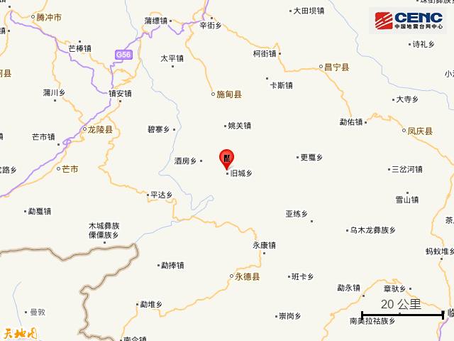 附近村镇:本次地震周边5公里内的村庄有旧城村、农庄、芒梗、蚌塘旺、老由旺、蚌柳、双龙、龙塘、老城子、王家田,20公里内的乡镇有旧城乡、酒房乡、姚关镇、湾甸傣族乡、万兴乡、勐糯镇、碧寨乡。