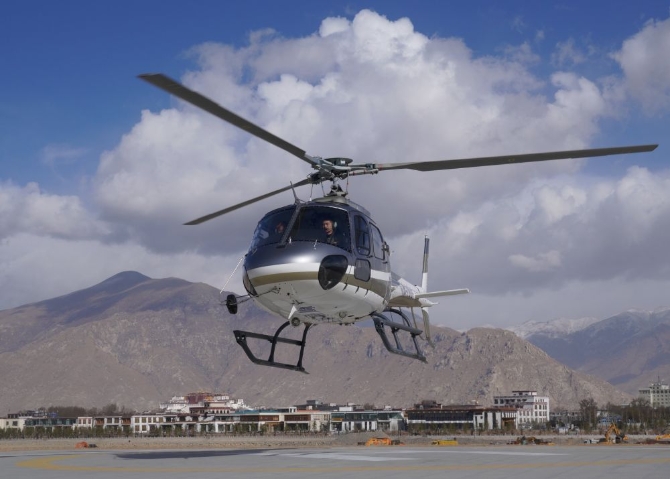 2019年3月20日,游客乘坐直升机空中游览拉萨城。新华社记者晋美多吉摄