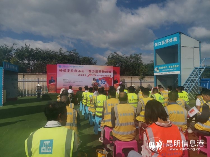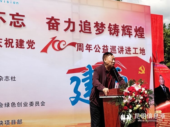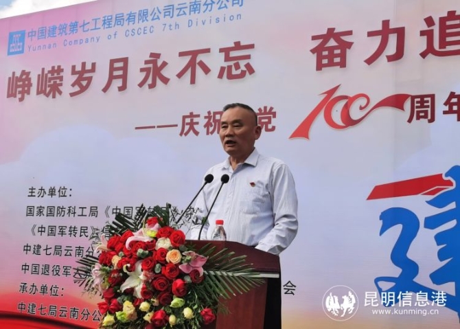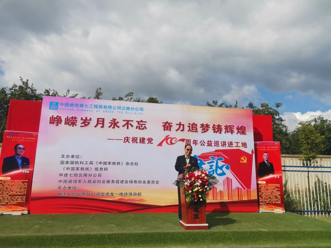 昆明信息港讯 记者李红鸾 2021年5月13日上午,为隆重庆祝中国共产党建党100周年,重温党的历史,歌颂党的伟大成就,继承和发扬党的优秀革命传统,在党 100 周岁生日到来之际,国家国防科工局《中国军转民》杂志社、《中国军转民》信息网、中国退役军人就业创业服务促进会绿色创业委员会联合中建七局西南公司云南分公司共同举办“庆祝建党 100 周年优秀退役军人先进事迹大型公益巡回演讲”活动,巡讲第二站,走进呈贡龙一地块项目部。