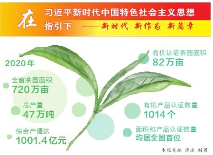 省农业农村厅日前提供的数据和云南省茶叶流通协会发布的《2020年度云南省茶产业报告》显示,2020年,全省茶叶综合产值达1001.4亿元,实现“千亿云茶产业”目标。