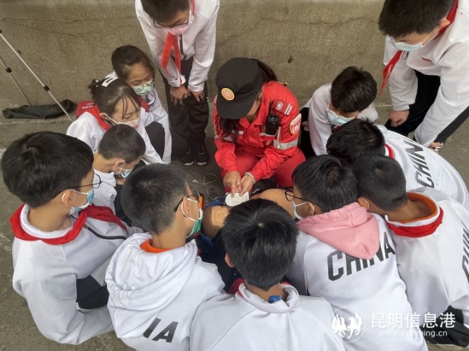 昆明信息港讯 记者龙泉积 通讯员杨洋 5月14日,官渡区关上中心区社区“5·12防灾减灾日”地震疏散演练活动在官渡区官益中学举行。现场,800余名师生在官渡阳光城市应急救援中心工作人员的指导下,掌握了在危险中迅速逃生、自救、互救的要领,增强防震应急安全的意识。