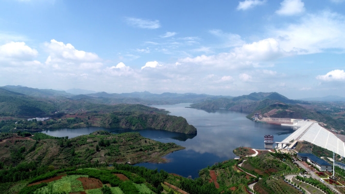 ↑位于河南省汝阳县前坪村的前坪水库,是一座以防洪为主,兼具供水、灌溉、发电功能的大型水利枢纽工程,是国务院确立的172项节水供水重大水利工程之一(无人机照片,4月26日摄)。