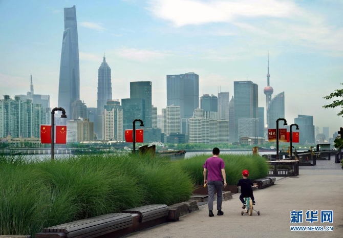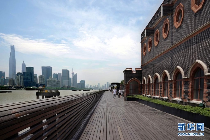 5月15日,市民在杨浦滨江公共空间休闲漫步。新华社记者 刘颖 摄