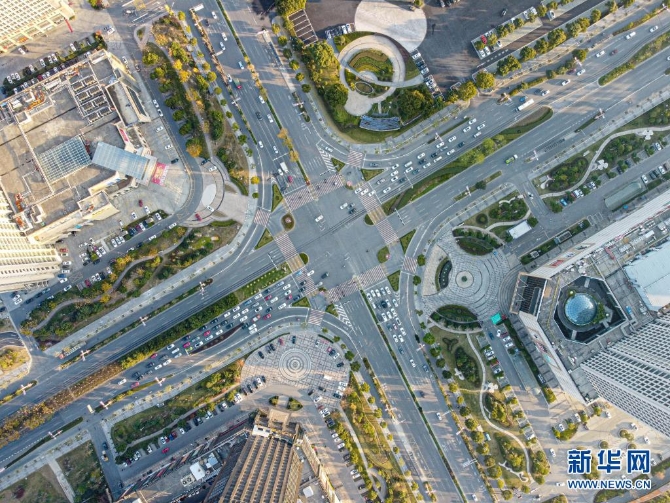 嘉善县嘉善大道与世纪大道路口景观(无人机照片,2020年12月16日摄)。新华社发(江汉 摄)
