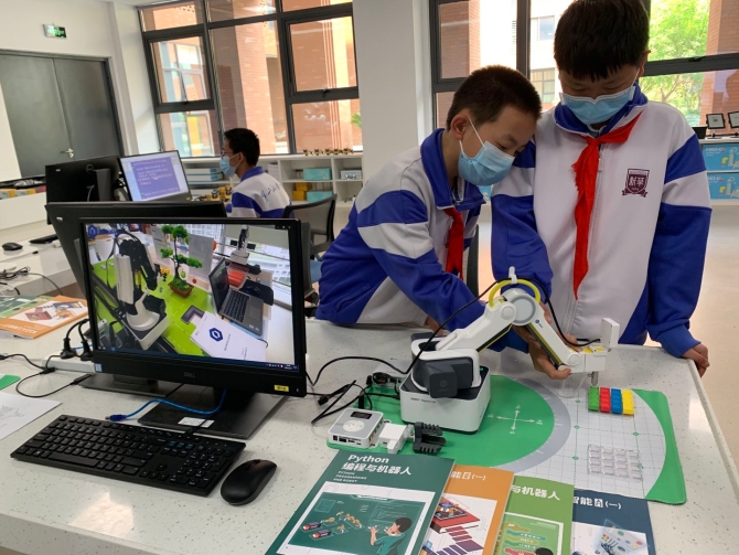 在天津市第二新华中学,记者时刻可以感受到“互联网+人工智能”背景下的新型教学模式、信息技术在教育改革中的创新应用、智慧教育生态体系让学生享受到的高品质幸福教育。目前,学校建设的人工智能学习中心,已开设机器人、机器手臂、人工交互智能体验、虚拟现实等多个层次,面向不同年级的课程,将人工智能纳入到教学中,激发了学生对于人工智能学习的兴趣。