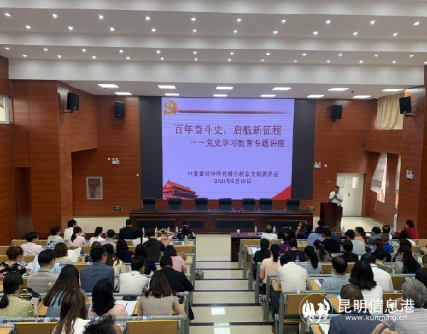 昆明信息港讯 记者黄彩英 通讯员梁丹 为迎接中国共产党成立100周年,教育广大党员干部学党史悟思想,以悟思想促进办实事,以办实事推动新局和引导全体教职工铭记红色历史、共话初心使命,黄冈中学昆明分校党总支5月18日组织开展了“奋斗百年路 启航新征程”主题党史学习教育讲座。