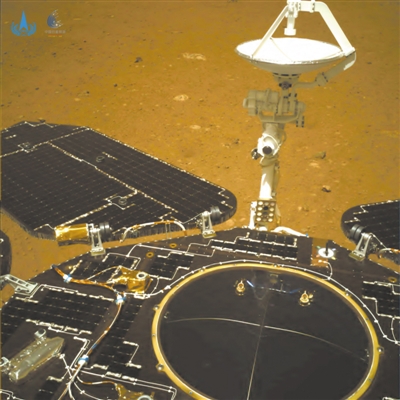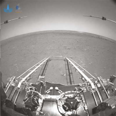 科技日报北京5月19日电 杨璐 陈刚 记者付毅飞 操秀英 19日,国家航天局发布天问一号探测器着陆过程两器分离和着陆后火星车拍摄的影像。图像中,着陆平台驶离坡道以及祝融号火星车太阳翼、天线等机构展开正常到位。
