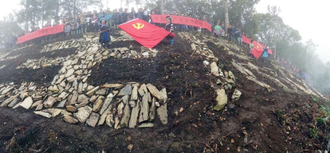 2021年4月底,群众正在修建“共产党万岁”几个大字。