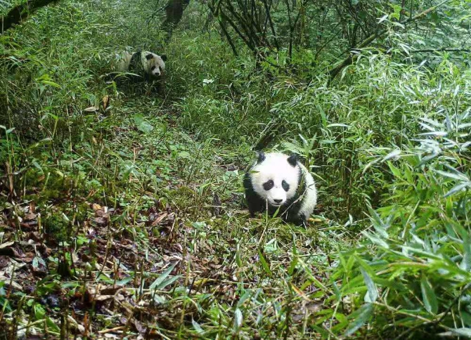 2020年6月,四川省雅安市宝兴县大熊猫国家公园宝兴蜂桶寨片区拍摄到的野生大熊猫母子同框画面。