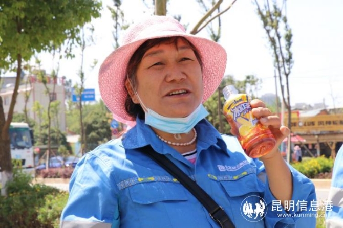 “再热的天我们也会穿着长袖工服,帽子口罩必不可少,当然这样的话干起活来就会更热了。”已经在一线岗位上干了快3年的王正玲说道。昆明人都知道,雨季来临前的这段日子是这座城市最热的时候,为了能让在路段作业的环卫工人们不那么辛苦,每年5月底“清凉一夏”的慰问活动便成了云南京环盘宸公司的“规定动作”,既送去了公司对职工的关爱,也送来了一丝丝清凉。事业五部经理助理邵银萍在发放解暑饮品时关切地说道:“大家辛苦啦,觉得太热的时候就休息一下,以防中暑,在干好工作的同时,也要保护好自己的身体!”接过慰问品的王大姐拧开冰红茶的盖子喝了起来,还不时与旁边的同事“干杯”,“这些饮品发放得太及时了,让我们心里暖暖的!”环卫工人们纷纷感叹道。