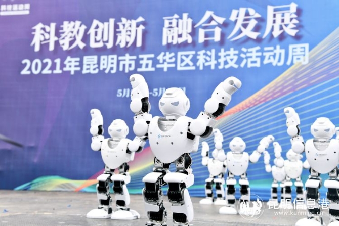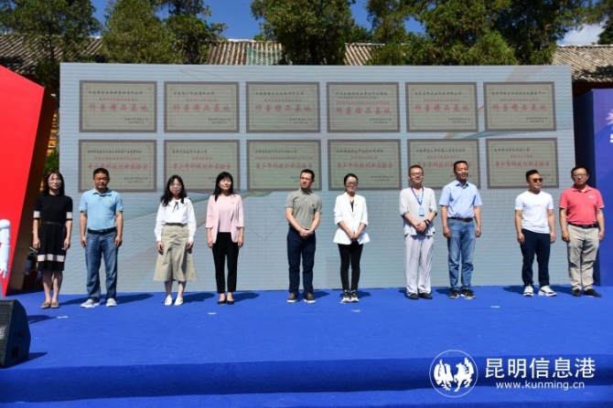 启动仪式上,主办方对获得2020年度昆明市科普精品基地和昆明市青少年科技创新实验室的单位进行了电子授牌,同时还组织了精彩的机器人表演和无人机表演。