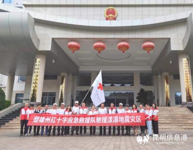 从接到集结通知到整队完毕近3个小时的时间,8名骨干队员由楚雄州红十字会党组书记滕洪带队,分别从武定、南华、双柏等地赶赴楚雄,作好了参与应急救援的准备。下午3:30分楚雄州人民政府副州长、州红十字会会长杨虹为队员送行。