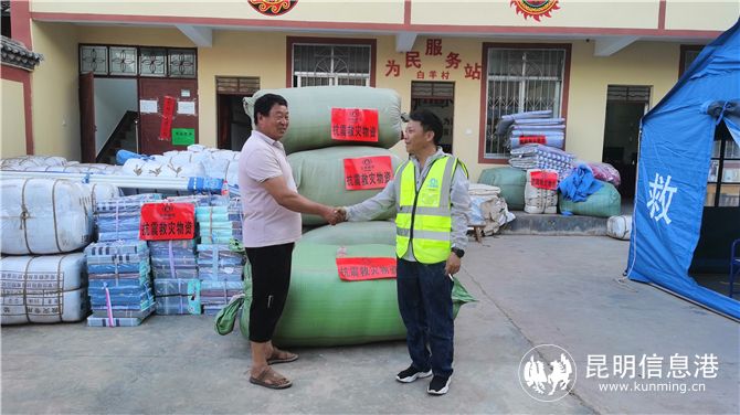 昆明信息港讯 记者曹月 通讯员杜春香 范孝敏 王祥彬 为了帮助漾濞地震灾区群众,5月23日,中国有色十四冶第八直管项目经理部经理周波带领公司在大理片区参与项目建设的10个基层单位代表来到漾濞县白杨村,为当地送去矿泉水、方便面、面包、被子等564件救灾物资。